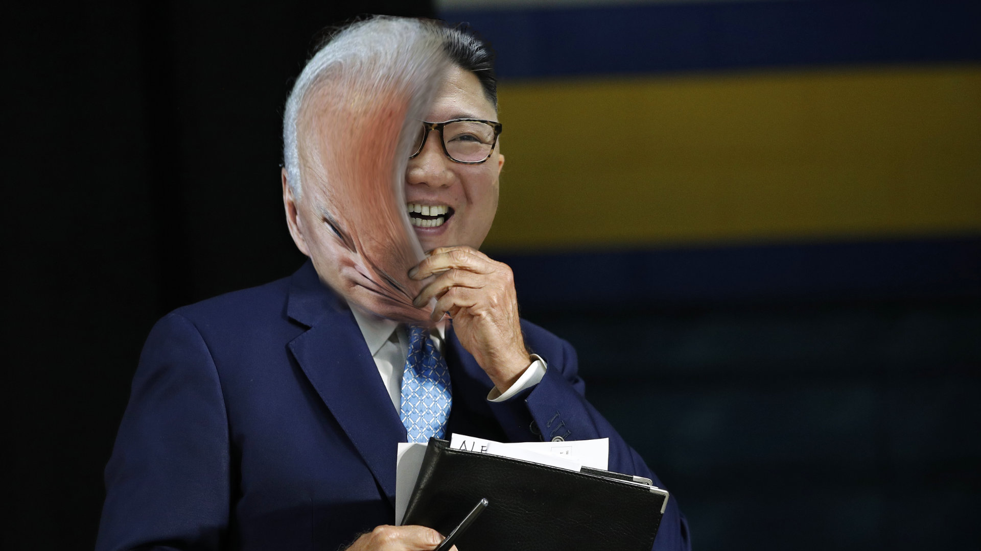While spectating a Democratic debate in California, many in the audience were stunned when Joe Biden began peeling back his mask. As his voice suddenly began to change mid-sentence, the true identity of Biden was revealed as Kim Jong-Un.